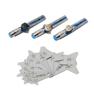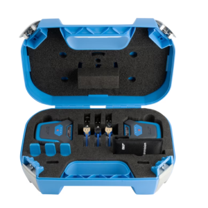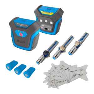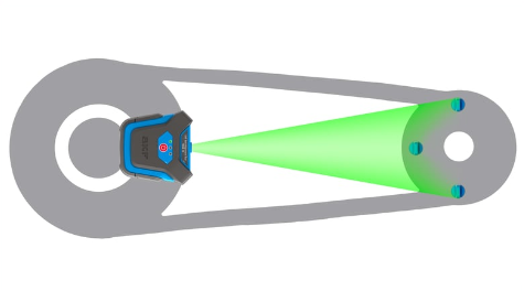 La herramienta tiene dos componentes: una unidad transmisora láser y una unidad receptora. Cada unidad se fija rápida y fácilmente mediante un potente imán a la cara interior o exterior de una polea para correa o de un piñón para cadena. El TKBA 31 puede utilizarse en la mayoría de las máquinas que emplean correas en V, correas de banda y correas acanaladas, así como en las que tienen piñones para cadena. Se proyecta una línea láser desde la unidad emisora hasta la unidad receptora montada en la polea opuesta. A continuación, la herramienta permite corregir el ángulo vertical, el ángulo horizontal y la desalineación paralela (incluye las combinaciones de estas tres variables).