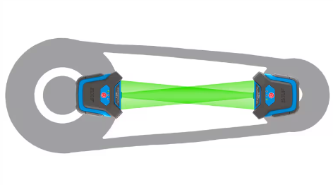 Herramienta profesional avanzada que permite la alineación de poleas y transmisiones por cadena